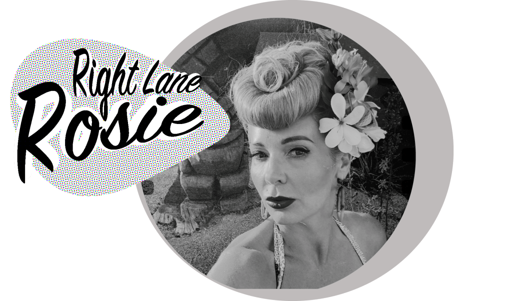 Right Lane Rosie is a graphic artist and vintage-inspired model blending mid-century glamour with modern design. With a background in branding and visual storytelling, she creates bold, nostalgic visuals rooted in rockabilly culture, retro Americana, and the golden age of motoring.